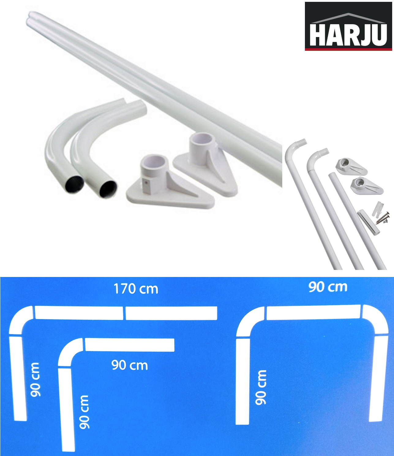 Valkoinen suihkuverhotanko jonka saat usean eri malliseksi muotoiltua (kts.kuva). U-mallin ansiosta voit sijoittaa tangon esimerkiksi suoralle seinälle tms.