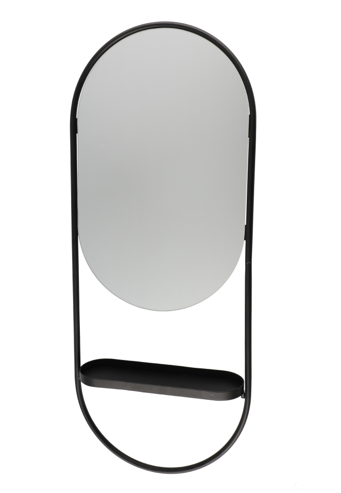 Tyylikäs ovaalin muotoinen peili, jossa on pieni hylly.