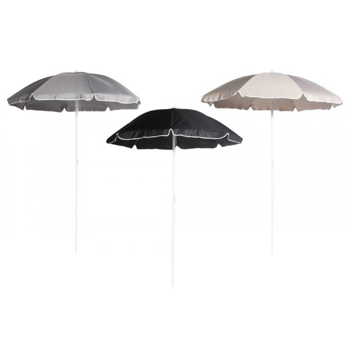 180-senttinen päivänvarjo kantopussilla. Teräsruoteet 3,5mm, teräksisen runkoputken halk. 32mm. Muovinen kallistusnivel. Teleskooppivarren kokonaispituus 205cm.