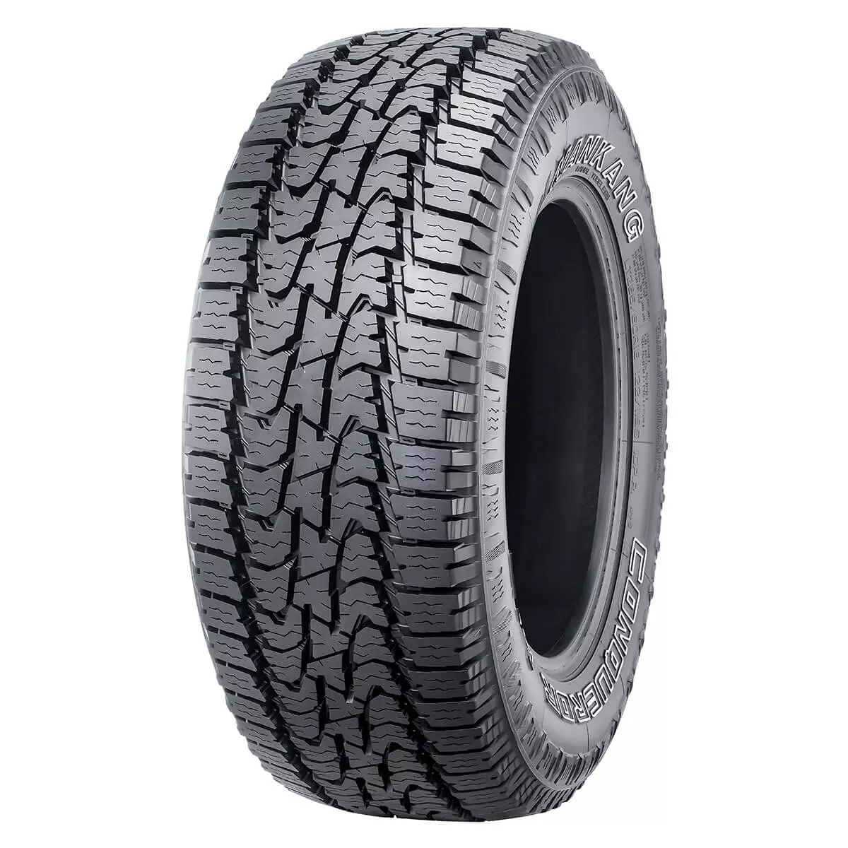 Nankang AT-5+ Conqueror A/T - monikäyttöinen maastorengas kaikkiin sääolosuhteisiin Nankang AT-5+ Conqueror A/T on suunniteltu kuljettajille, jotka vaativat renkaaltaan kestävyyttä ja suorituskykyä kaikissa olosuhteissa. Tämä maastorengas tarjoaa erinomaisen pidon niin maantiellä kuin haastavassa maastossa, kuten mudassa, lumessa, sateessa ja hiekassa. Kaikkiin sääolosuhteisiinAT-5+ Conqueror A/T -renkaan ainutlaatuinen kuviointi ja parannettu kumiseos takaavat luotettavan suorituskyvyn ympäri vuoden. Voit luottaa renkaaseen sekä kesällä että talvella. Veto-ominaisuudetRengas on erityisesti suunniteltu vetoajoneuvoille, joten se sopii erinomaisesti kuorma-autojen ja muiden raskaiden ajoneuvojen vetotarpeisiin. SilikaattiseosUusi silikaattiseos parantaa renkaan suorituskykyä ja pitoa, erityisesti märillä ja liukkailla teillä. Tämä tekee ajamisesta turvallisempaa ja mukavampaa, olipa keli mikä tahansa. Maastokäyttöön suunniteltuAT-5+ Conqueror A/T:n jämäkkä ja aggressiivinen muotoilu takaa erinomaisen suorituskyvyn sekä maantiellä että maastossa. Olipa kyseessä mökkitie tai mutainen polku, tämä rengas ei jätä pulaan. Pito märälläYmpyräsuuntaiset urat ohjaavat vettä tehokkaasti pois renkaan alta, mikä parantaa märkäpitoa ja käsiteltävyyttä, erityisesti sateisilla keleillä. 3 Peak Mountain/Snowflake -symboliRengas on 3PMS-sertifioitu, mikä tarkoittaa, että se täyttää ankarien lumiolosuhteiden vaatimukset. Tämä symboli on merkki siitä, että AT-5+ Conqueror A/T suoriutuu erinomaisesti myös talvisissa olosuhteissa. Valitse Nankang AT-5+ Conqueror A/T, jos etsit luotettavaa ja monipuolista rengasta, joka suoriutuu kaikissa olosuhteissa ja takaa turvallisen ajokokemuksen ympäri vuoden.