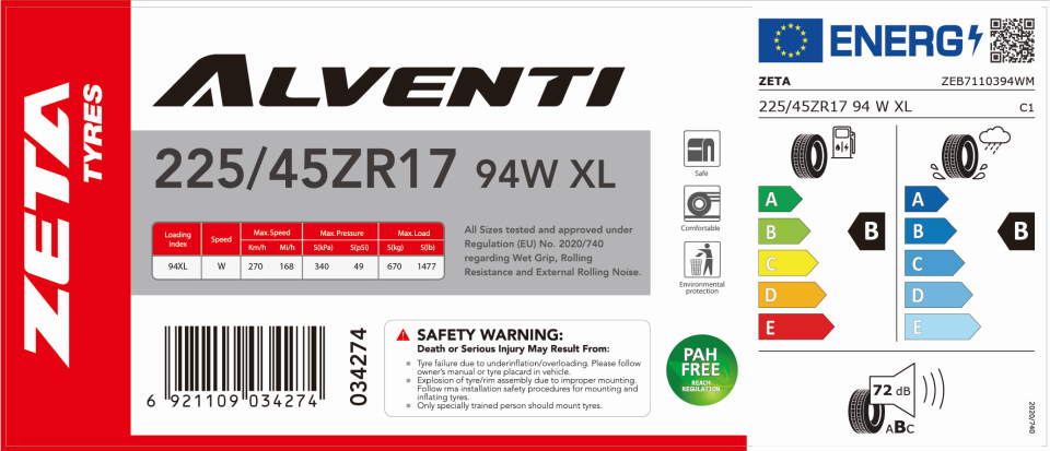 KESÄRENGAS 225/45ZR17 94W XL Alventi ZETA Erinomainen kesärengas pohjolan oloihin Kesärenkaat helposti vaikka kotiovelle