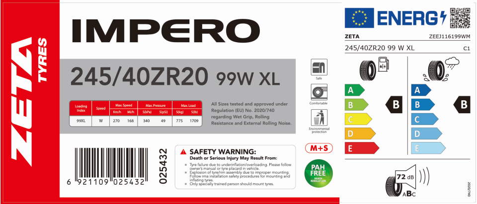 KESÄRENGAS 245/40 ZR20 99W XL IMPERO ZETA