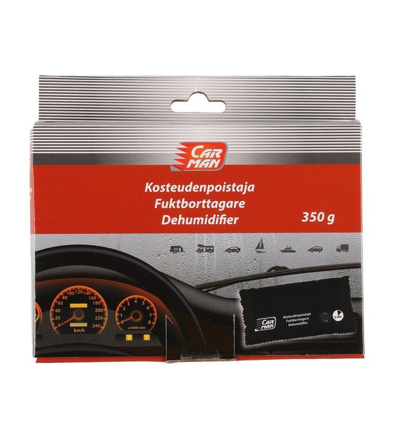 Kosteudenpoistaja poistaa liiallisen ilmankosteuden estäen homeen ja hajun muodostumista sekä kosteuden kertymistä auton pinnoille. Kosteudenpoistajaa voidaan käyttää vuoden ympäri ja kaikissa olosuhteissa ja lämpötiloissa. Tarvittaessa se tasaa kosteuden sitomalla ylimääräisen ilmankosteuden itseensä. Voidaan uudelleenaktivoida kuivaamalla mikroaaltouunissa. Kosteudenpoistajapussi sisältää 350 g silikageelirakeita.