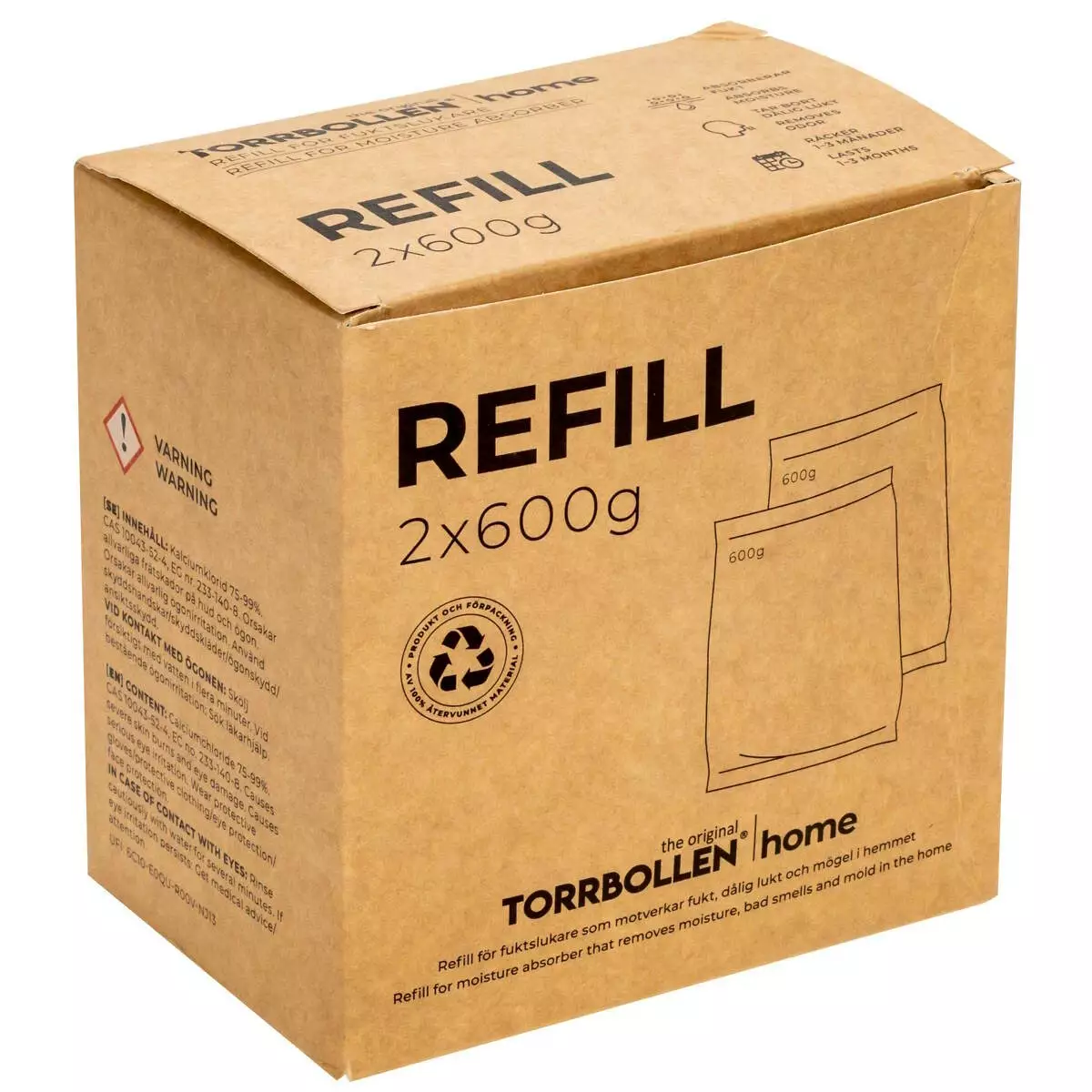 - sisältö 2 x 600 g täyttöpakkaus Torrbollen® Home kosteudenpoistajiin
