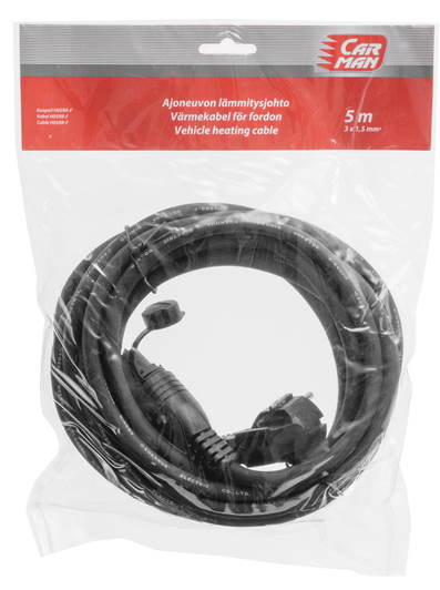 Pituus 5 m. F 3 x 1,5 mm² H07BQ-tyypin kaapeli. Luotettava Calix-yhteensopiva auton lämmitysjohto. Testattu liittyvien standardien mukaisesti, kestää Suomen lainsäädännössä vaaditun kylmätaivutuskokeen -50°C lämpötilassa. Soveltuu käytettäväksi myös kaikkein kylmimmissä olosuhteissa.