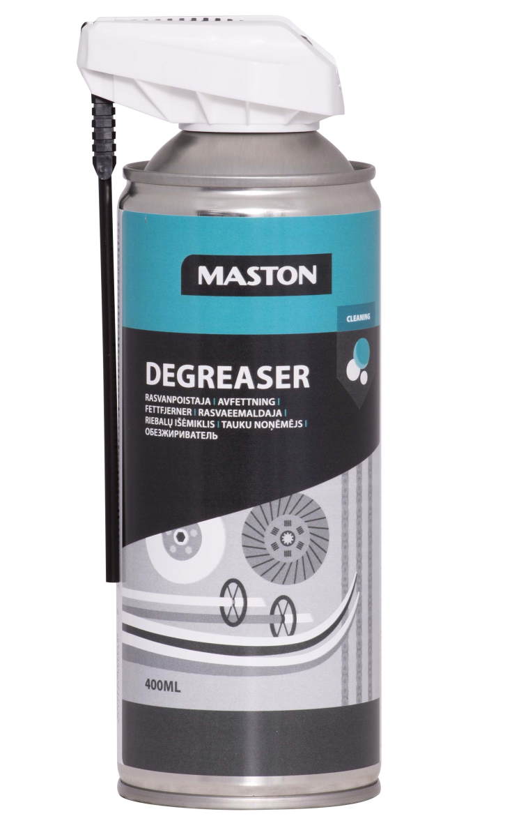 Maston HOBBYmix Rasvanpoistaja kotiin, mökille ja vapaa-aikaan. Poistaa tehokkaasti rasvan, öljyn yms. epäpuhtaudet metalli- ja kovista pinnoista. Soveltuu hyvin myös jarru- ja kytkinpintojen puhdistukseen. Huomioithan, että tuote saattaa vahingoittaa herkkiä kumi- ja muoviosia. Ravistettava ennen käyttöä.