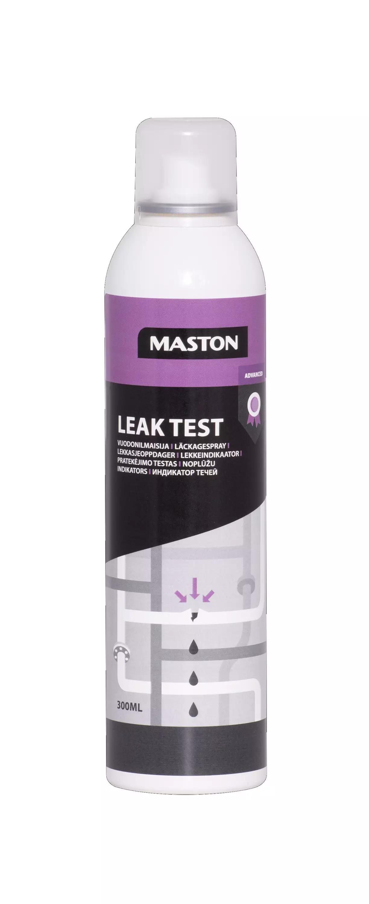 Maston Vuodonilmaisija auttaa paikallistamaan nopeasti vuodot mm. letkuista, putkista, liitoksista ja saumoista. Se muodostaa selkeästi havaittavia kuplia vuotokohtaan. Soveltuu erinomaisesti neste-, kaasu- ja ilmaputkistojen tarkistukseen. Maston Vuodonilmaisija on palamaton. Käyttöohje Sumuta suoraan tarkistettavaan kohteeseen. Mikäli kohteessa on vuoto se havaitaan välittömästi kuplien avulla.