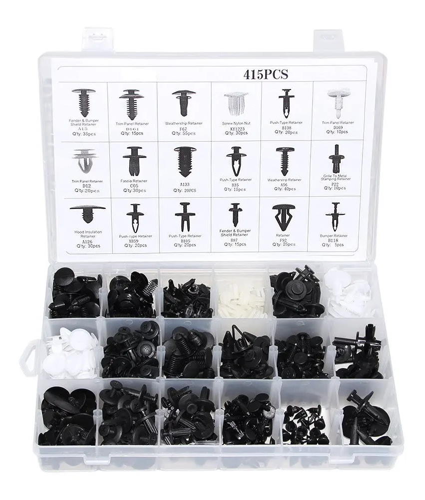 18 erilaista kiinnikettä, yhteensä 415 osaa.