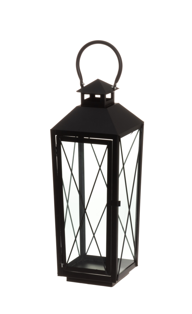Kaunis musta lyhty, jonka voi ripustaa tai asettaa tasaiselle alustalle.
