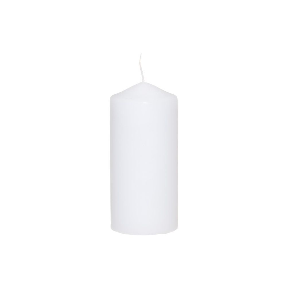 Pöytäkynttilä valkoinen korkeus 15cm halkaisija 7cm. Paloaika n. 66h
