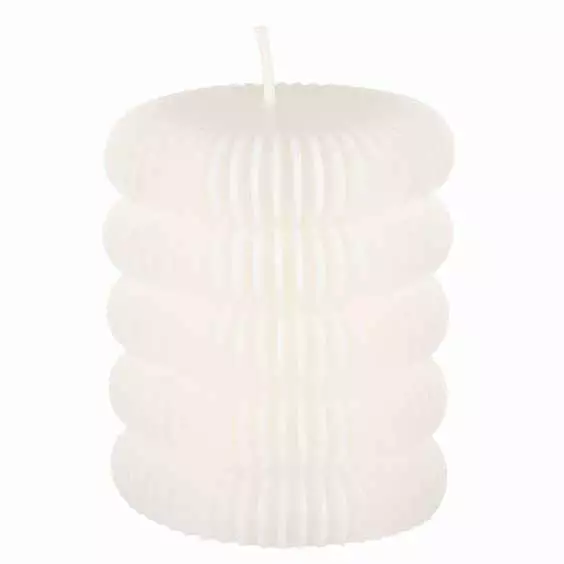 Pöytäkynttilä uurrettu valkoinen läpivärjätty 6,5x8,2 cm