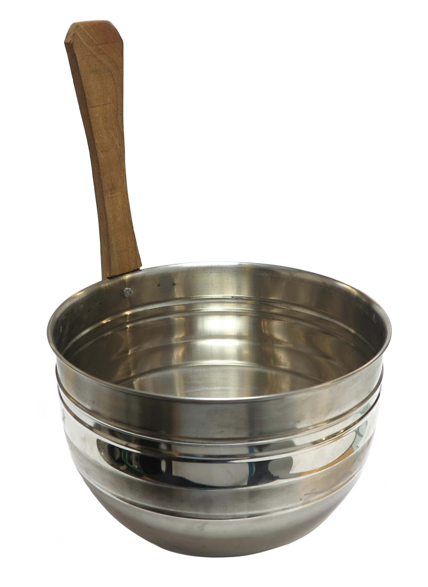 Tyylikäs rosterinen saunakiulu puisella kahvalla. Lievä II-laatu, saattaa olla kahvassa rosoinen reuna tai pieni lommo metallissa.