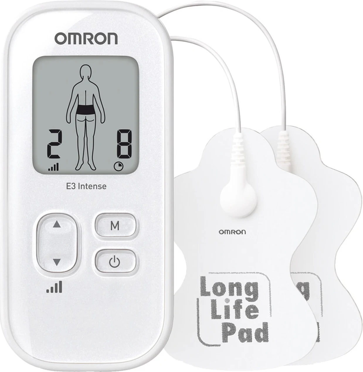 OMRON E3 Intense on lääkkeetön kivunlievittäjä, jossa on kuusi esiasetettua ohjelmaa selälle, hartioille, nivelille ja lihaksille. Laite perustuu TENS-tekniikkaan (Transcutaneous Electrical Nerve Stimulation), jonka teho on kliinisesti todistettu ja joka on laajasti fysioterapeuttien ja kipuasiantuntijoiden käytössä.