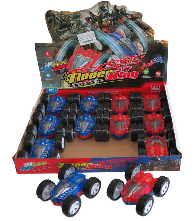 Temppuauto, joka pyörähtää pienten esteiden yli ja jatkaa kulkuaan. Auton pituus 11 cm. Toimitus värin suhteen sattumanvarainen- ei valittavissa verkkokaupassa.