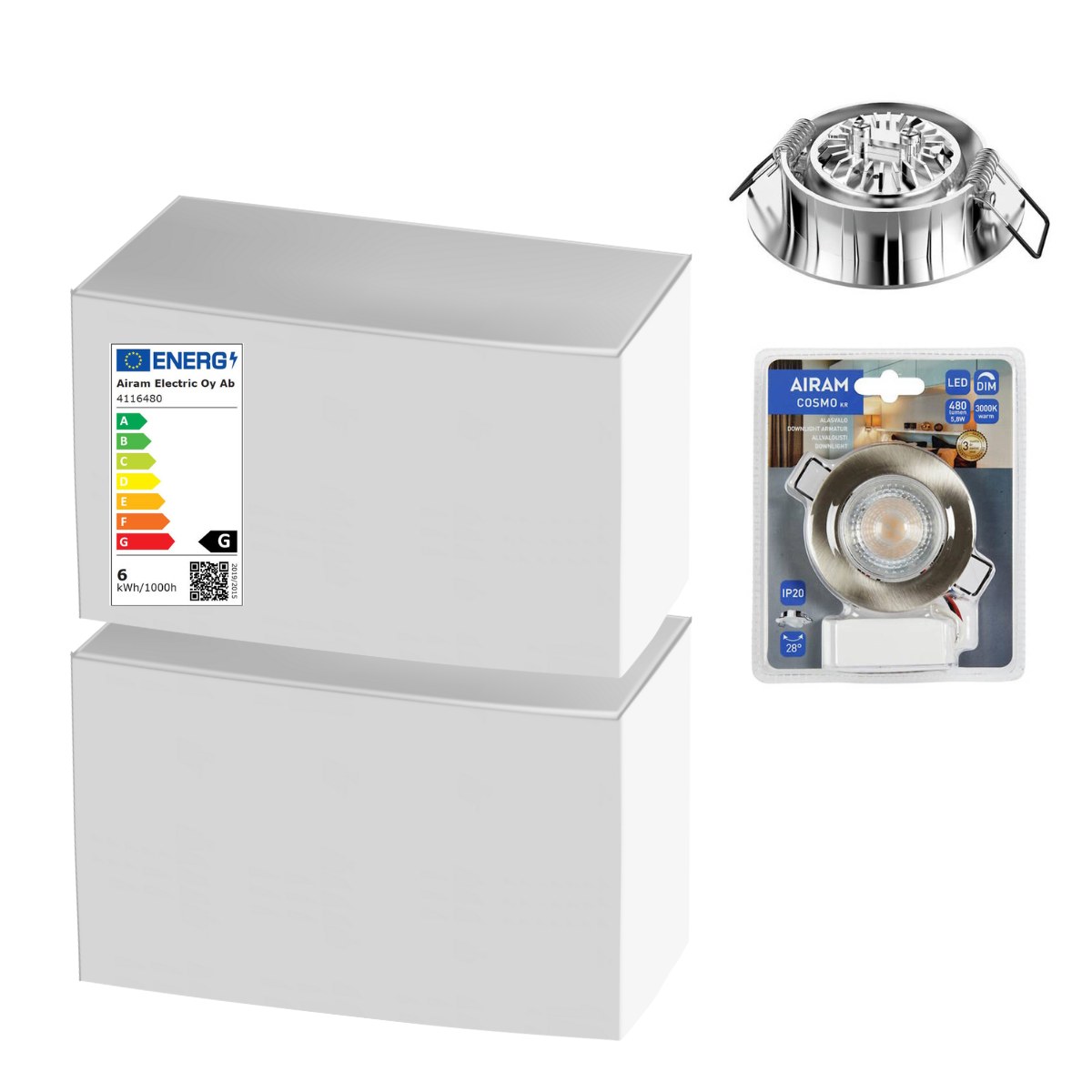 Tukkuerä Airamin alasvalaisinta. Paketissa 20 kappaletta.
