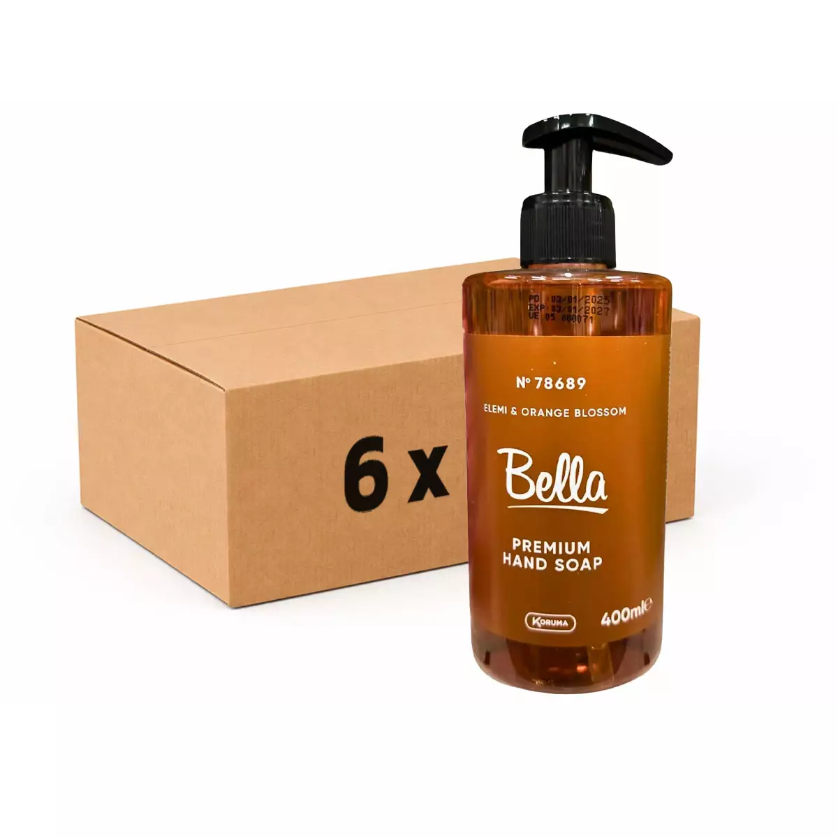 Pakkaus sisältää 6 kpl tuotetta Bella Nestesaippua 400 ml.