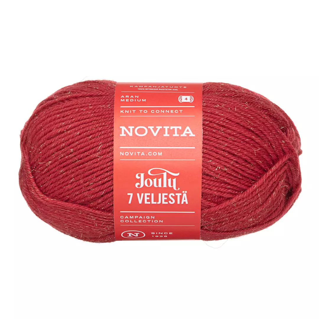 Novita 7 Veljestä Joulu -sukkalanka tuo neuleisiin ripauksen juhlan tunnelmaa. Klassikkolangan jouluversiossa yhdistyvät perinteiset jouluun sopivat sävyt ja hienostunut metallinhohtoinen kimalle, joka tekee lopputuloksesta näyttävän ja juhlavan. Tämä lanka on täydellinen valinta joulun aikaan neulottaviin villasukkiin, asusteisiin ja lahjaneuleisiin.