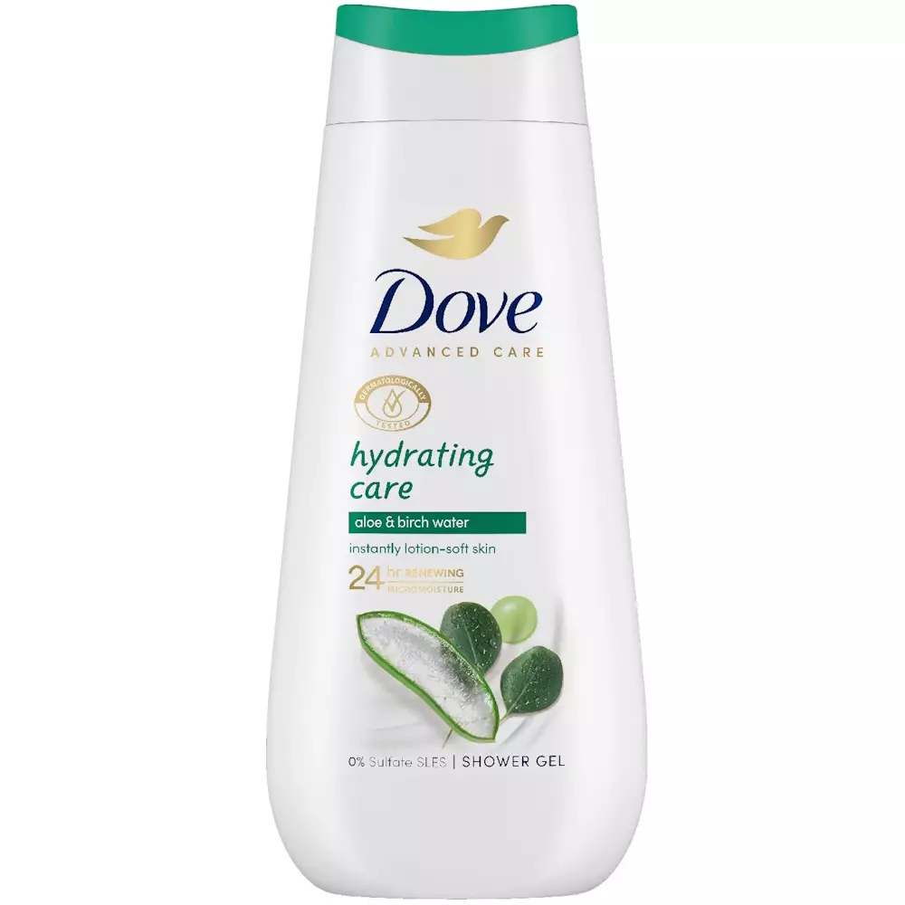 Dove Advanced Care Hydrating Care -suihkusaippua herättää ihon ja aistit raikkaalla aloe veran ja koivuveden yhdistelmällä. Tämä hellävarainen ja kosteuttava suihkusaippua elvyttää ihoa jo yhden käyttökerran jälkeen, jättäen sen pehmeäksi, sileäksi ja miellyttävän kosteutetuksi – kuin olisit levittänyt kosteusvoidetta suihkun yhteydessä.
