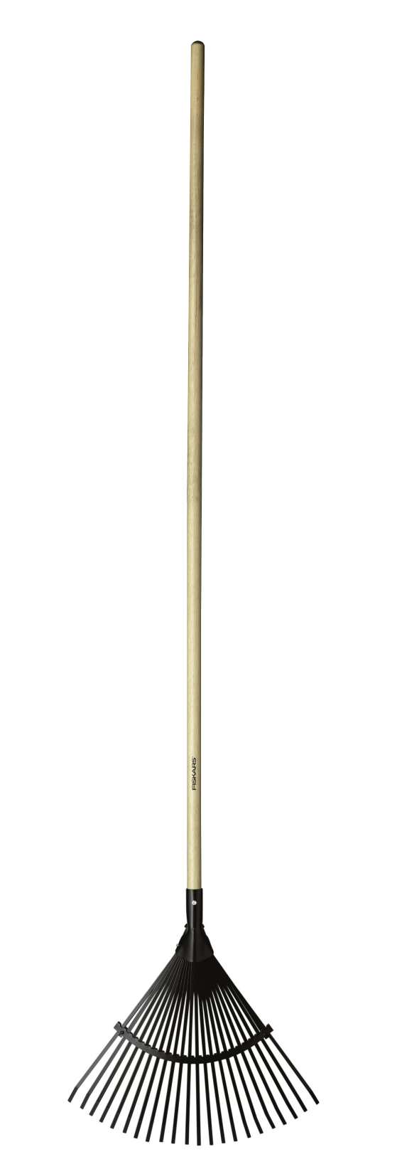 Fiskars lehtiharava Classic musta on kaunis, perinteinen harava lehtien haravoimiseen. Varsi on valmistettu lakatusta saarnesta ja terät booriteräksestä.