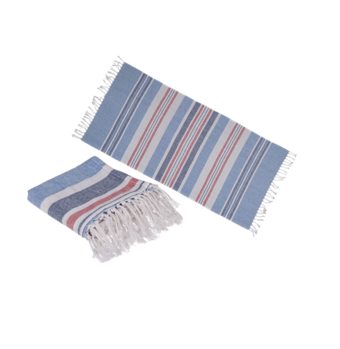 Suurikokoinen hamam pyyhe. Väri valkoinen/sininen/punainen 80%puuvillaa 20% polyesteriä.