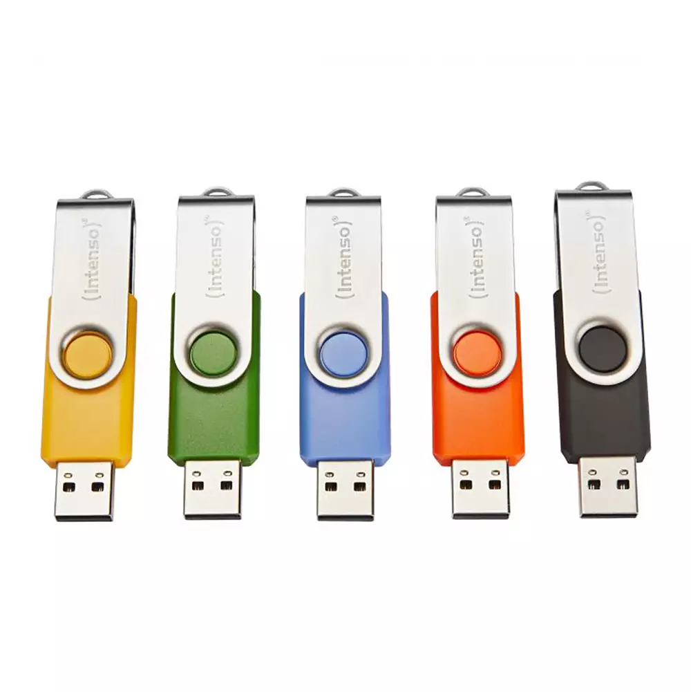 Intenso Basic Line -multipack sisältää viisi 32 GB USB-tikkua eri väreissä: keltainen, vihreä, musta, sininen ja oranssi. Käytännöllinen pakkaus sopii erinomaisesti tilanteisiin, joissa tiedostoja siirretään ja säilytetään säännöllisesti. Eri värit helpottavat tikkujen erottamista toisistaan arjessa.
