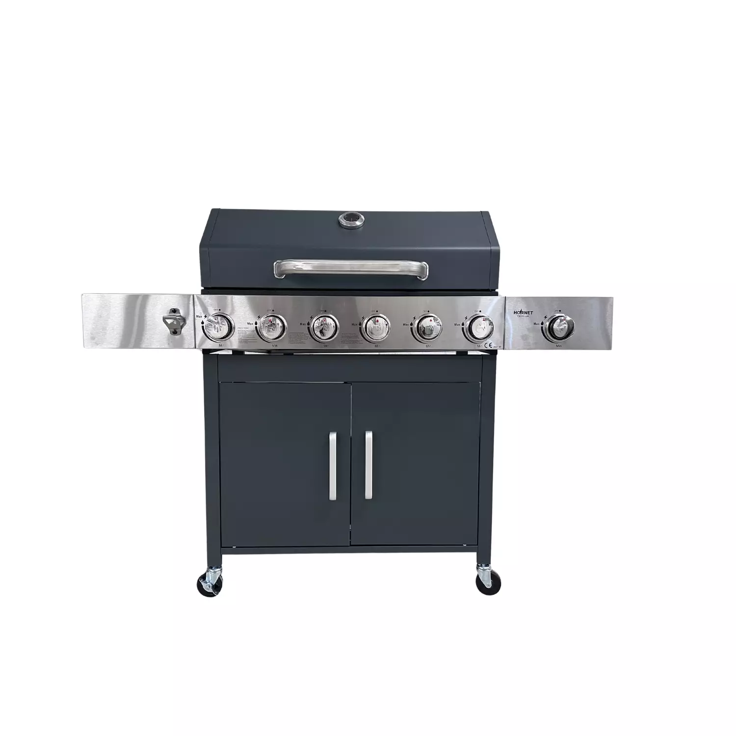 Hornet kaasugrilli 6+1 on suuri grilli isommille seurueille ja aktiiviseen käyttöön. Kuusi ruostumattomasta teräksestä valmistettua pääpoltinta sekä erillinen sivukeitin tuottavat yhteensä 19,3 kW tehon, joten lämpöä riittää laajalle grillausalalle.