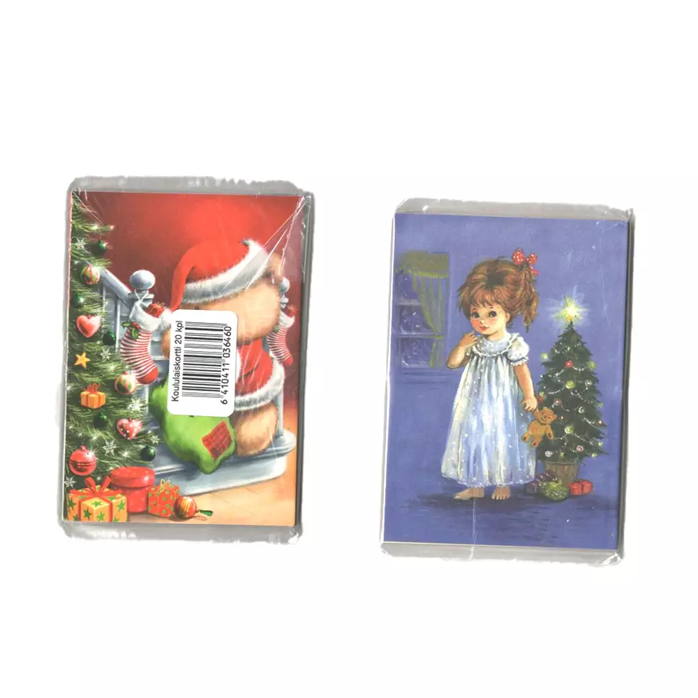 Perinteiset ja tunnelmalliset koululaiskortit sopivat täydellisesti joulutervehdyksiin ja muistamisiin. Korttien suloiset ja lämminhenkiset kuvitukset ilahduttavat niin lapsia kuin aikuisia, ja tuovat joulun taikaa jokaiseen tervehdykseen. Pakkauksessa on 20 korttia, joissa on nostalgisia joulukuvia, kuten kuusia, lahjoja ja lapsuuden joulun tunnelmaa. Kortit sopivat hyvin myös koululaisten omiin joulutervehdyksiin.
