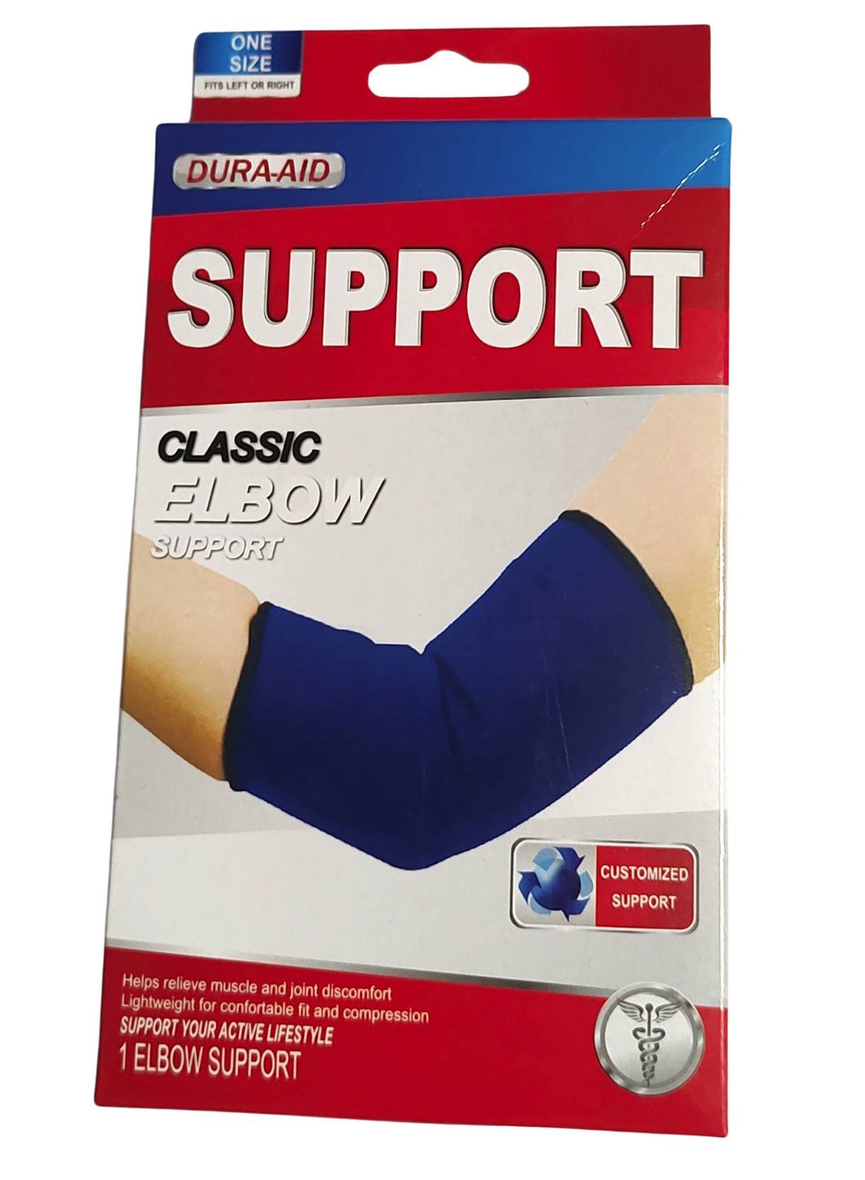 Dura-Aid kyynärtuki helpottaa nivelkipua ja tukee lihaksia. Valmistettu puuvillasta ja kumista. Käsinpesu.