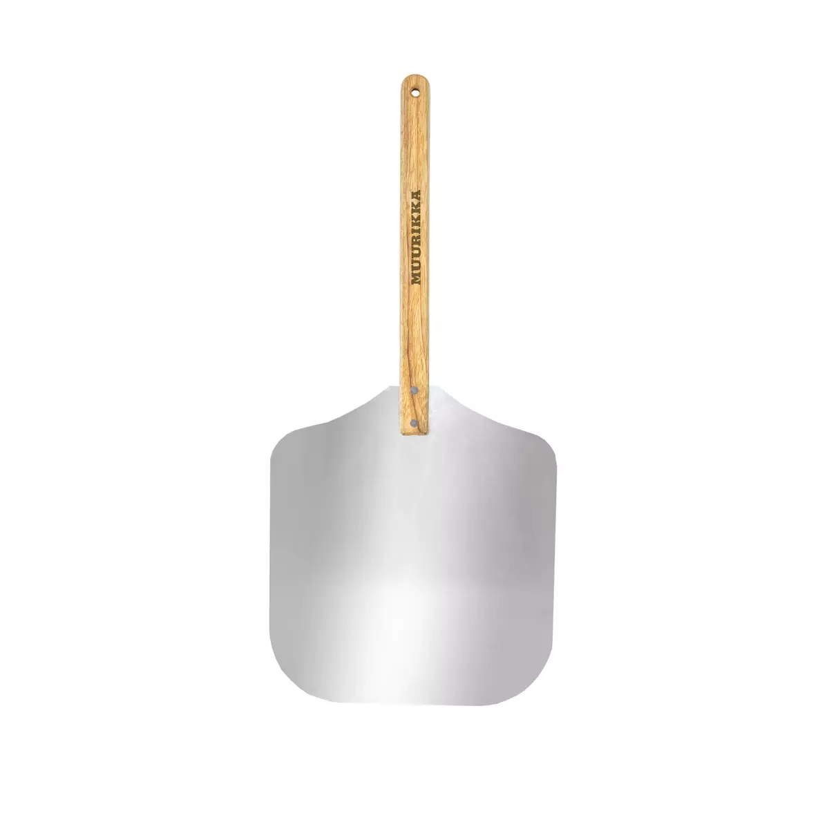 Alumiininen pizza-/leipälapio, puukahva. Levitä lapiolle runsaasti jauhoja, jotta taikina ei tartu siihen. 30x34 cm. Kahvan pituus 30 cm.