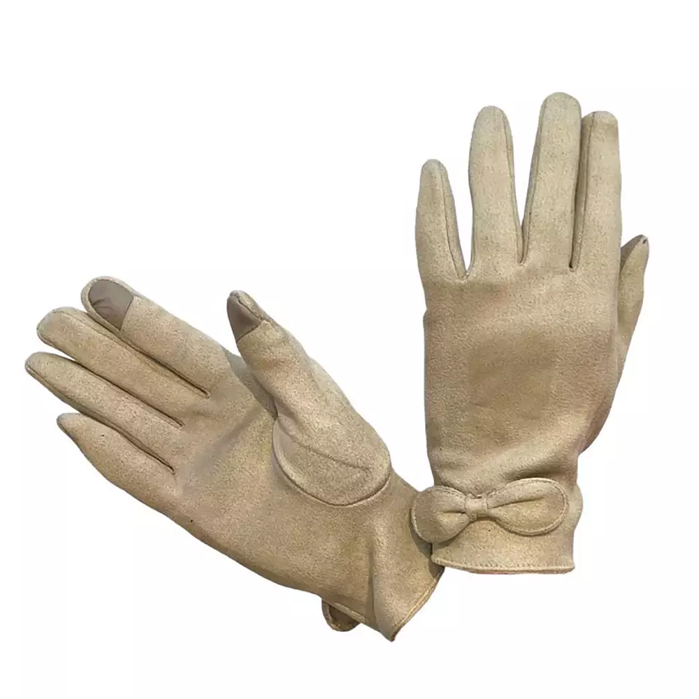 Tyylikkäät ja miellyttävän pehmeät keinomokkasormikkaat arjen menoihin. Polyesterin ja elastaanin sekoite tekee sormikkaista joustavat ja hyvin käteen istuvat. Somisteena kaunis rusetti ranteessa. Peukalossa ja etusormessa on touchscreen-pinnoite, jonka ansiosta voit käyttää puhelinta sormikkaita riisumatta.