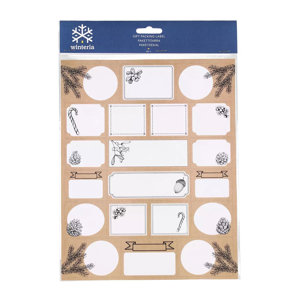 Suloiset pakettitarrat luovat viimeistellyn ilmeen lahjapakkauksiin. Tarroihin voi kirjoittaa oman tervehdyksen tai vastaanottajan nimen, ja ne sopivat kaikkiin joulun lahjapakkauksiin. Pakkaus sisältää 2 arkkia, ja kummassakin arkissa on 20 tarraa, yhteensä 40 kpl. Tarra-arkin koko: 22 x 32 cm.