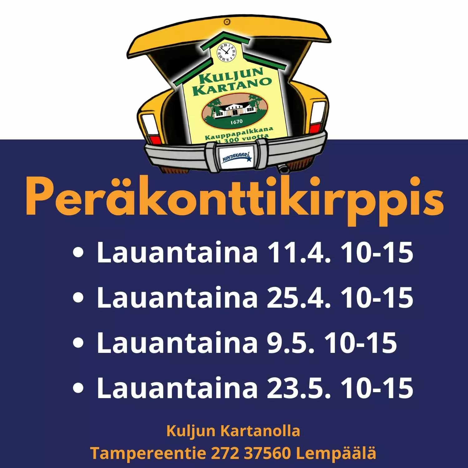 Peräkonttikirppis Kuljun Kartano Lempäälä myyntipaikka 1kpl