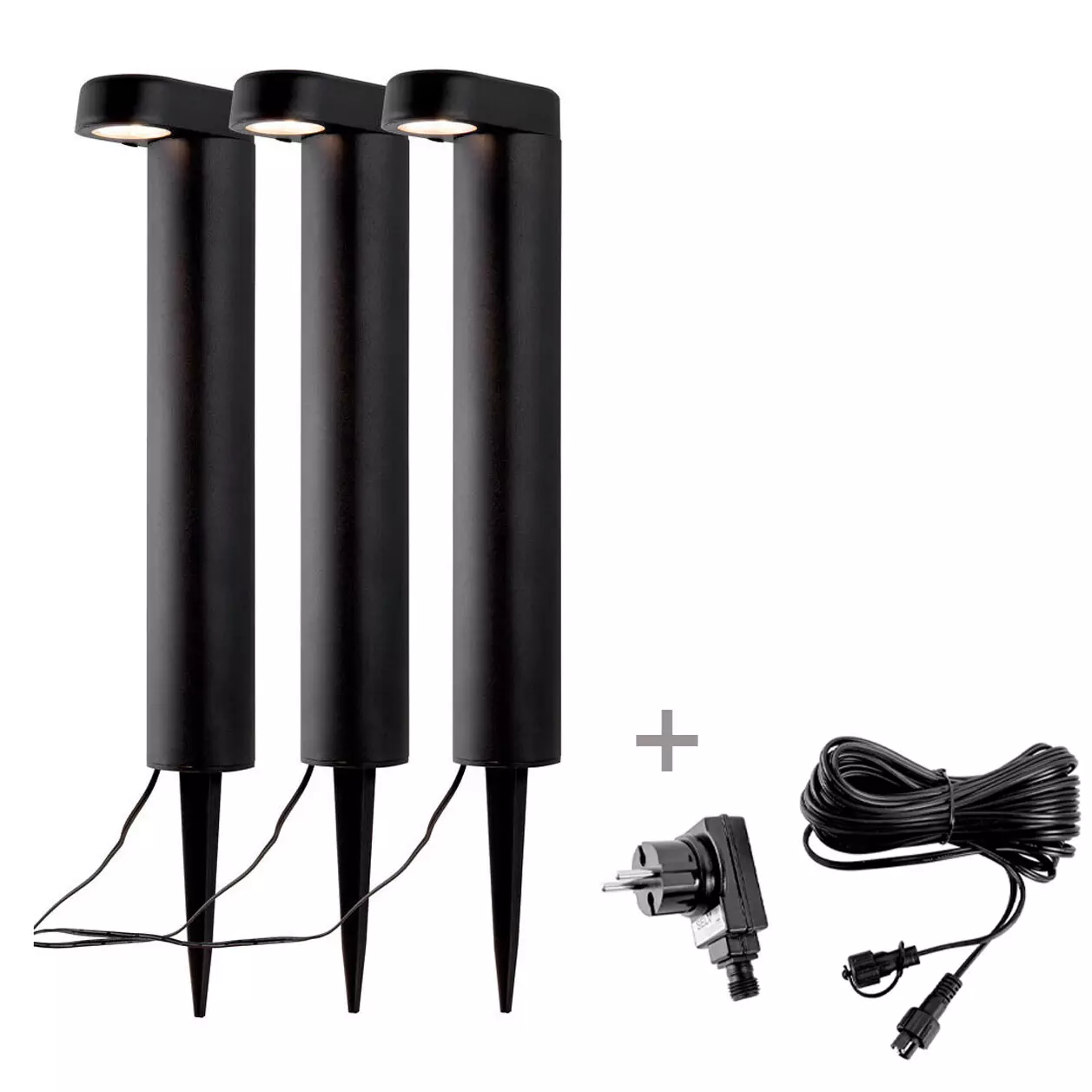Asennus käy vaivattomasti mukana tulevien maapiikkien avulla. Kätevän liitoskappaleen ansiosta valaisimet voidaan kytkeä syöttökaapeliin haluttuun kohtaan, mikä mahdollistaa joustavan ja monipuolisen asennuksen. Yhden muuntajan (12 W) taakse voi liittää jopa 8 kappaletta 1,5 W pollarivalaisimia, ja maksimipituus yhdistetyille johdoille on 40 m.