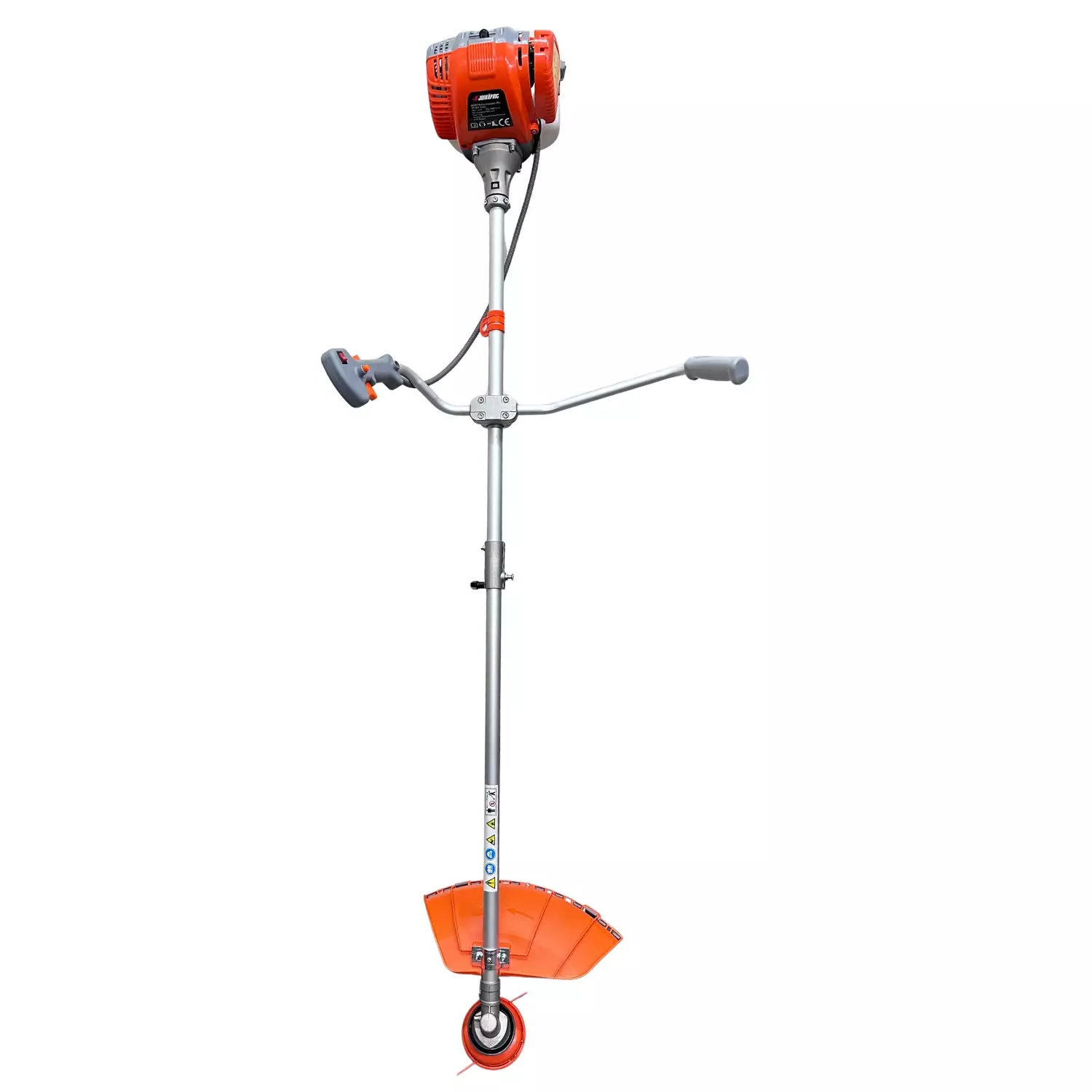 Säädettävät kahden käden ohjauskahvat parantavat työergonomiaa ja helpottavat koneen hallintaa. Mukana toimitettavat valjaat keventävät työskentelyä pidemmissä raivaustöissä.