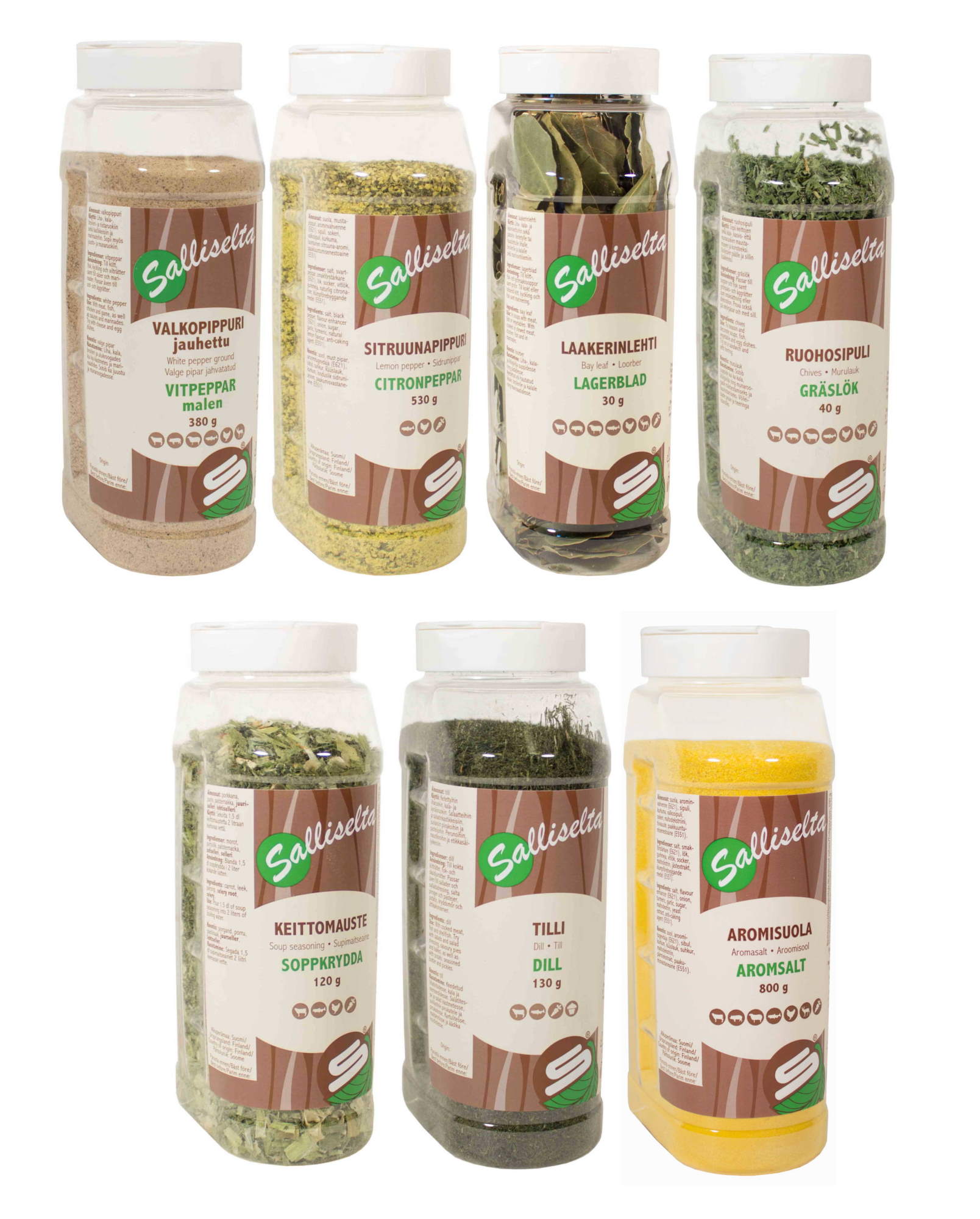 Takuulla kattava setti mausteita, joita kaikkia voit hyvillä mielin ja makuhermoja kutkutellen käyttää perinteisissä kalaruoissa.