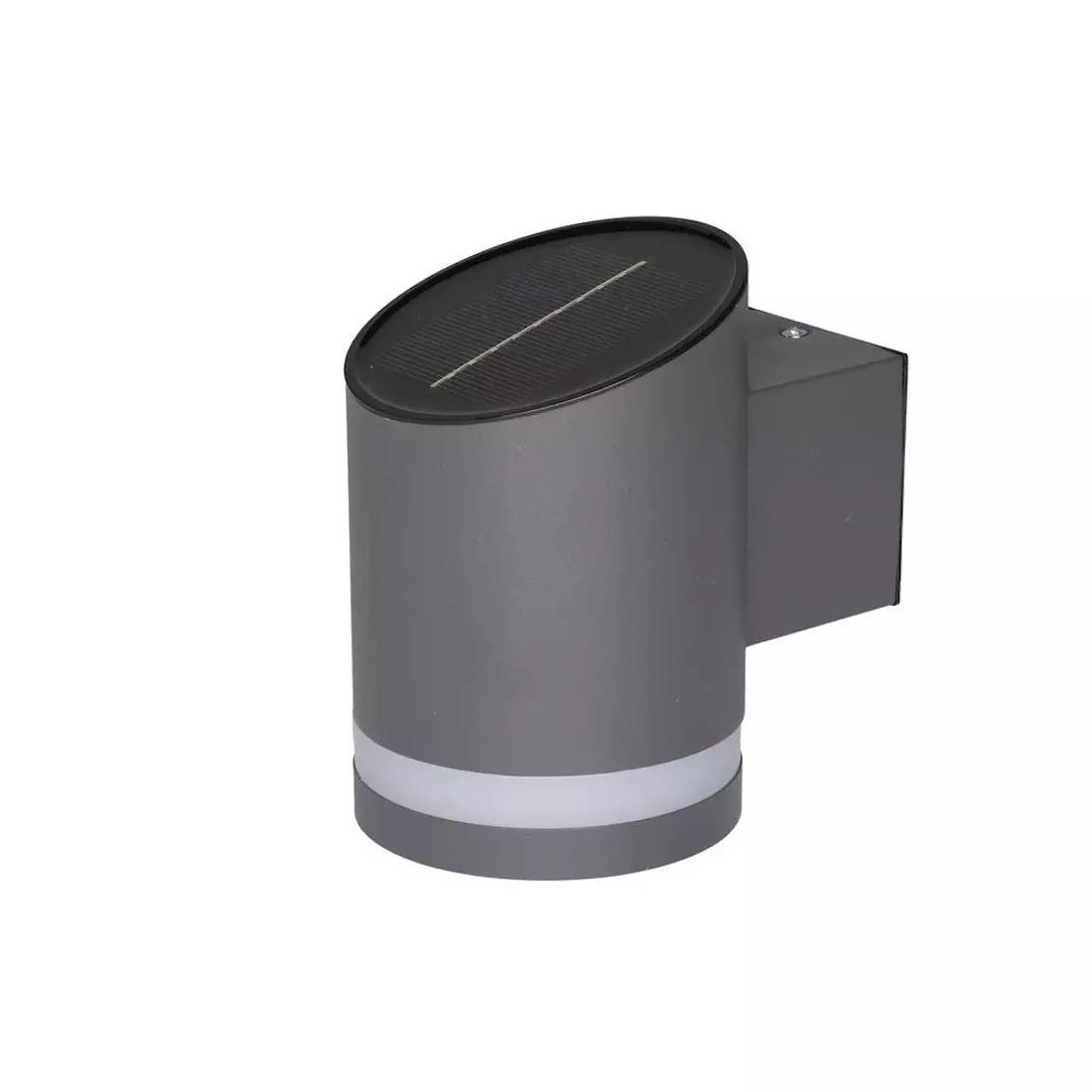 Tyylikäs seinälle asennettava ja kiinteällä aurinkopaneelilla varustettu valaisin. Aurinkopaneelissa on hämärätunnistin joka sytyttää valon hämärän tullen ja valo sammuu automaattisesti 7 tunnin käytön jälkeen. Aurinkopaneeli: yksikide 0,75 W 5 V 150 mAh. Akku: 3.7 V 1200mAh Li. Kotelointiluokka IP44. Valoteho max 120 lm. Teho: 1 W. Värilämpötila 4000 K (kirkas valkoinen). Takuu 12 kk.