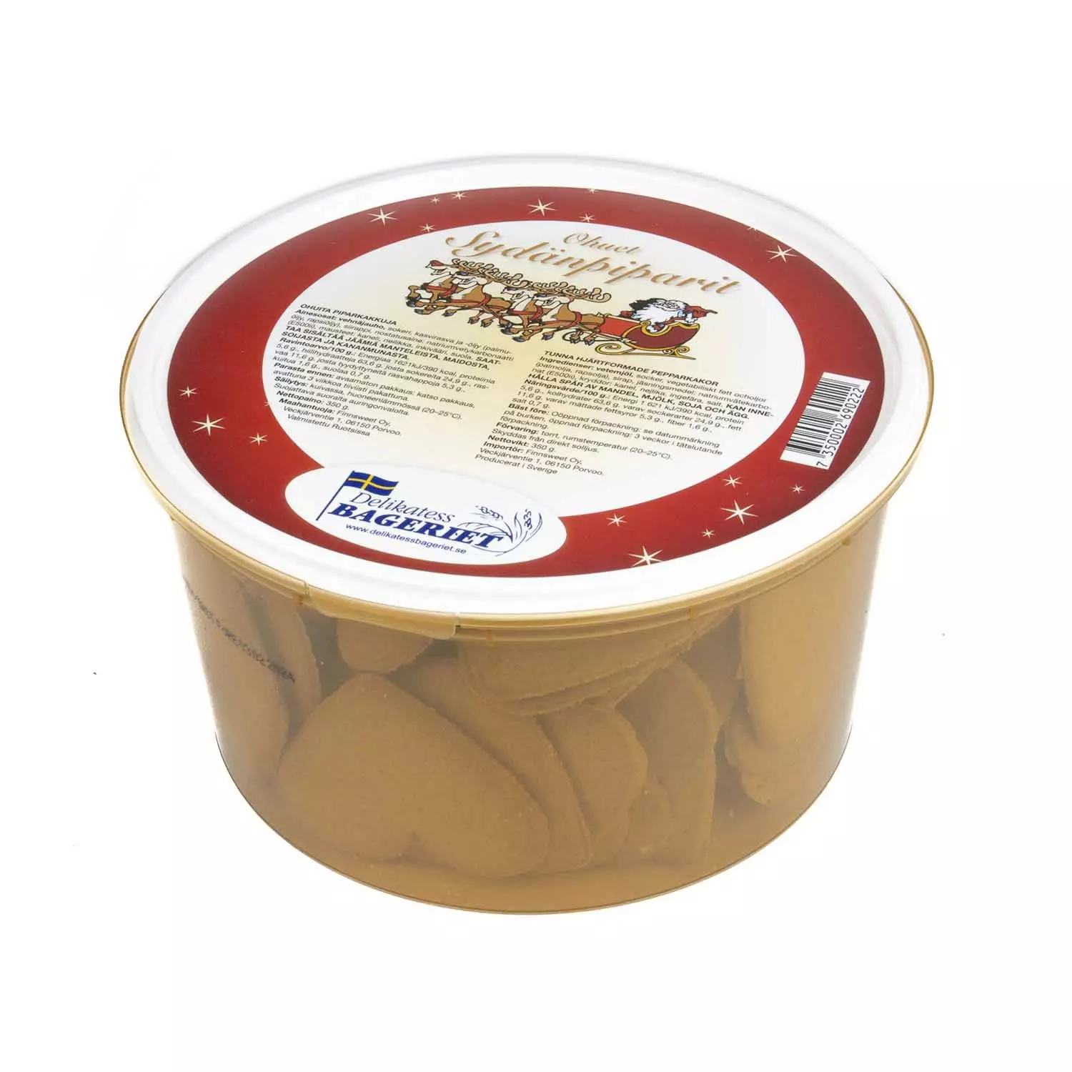 Ohuet ja herkulliset sydämenmuotoiset piparkakut tuovat joulun tunnelman esiin jokaisella puraisulla. Rapeat, aromikkaat ja kauniin muotoiset piparit sopivat täydellisesti jouluherkutteluun, glögin kanssa nautittavaksi tai lahjaksi annettavaksi. Kätevä muovirasia pitää piparit tuoreina ja ehjinä.