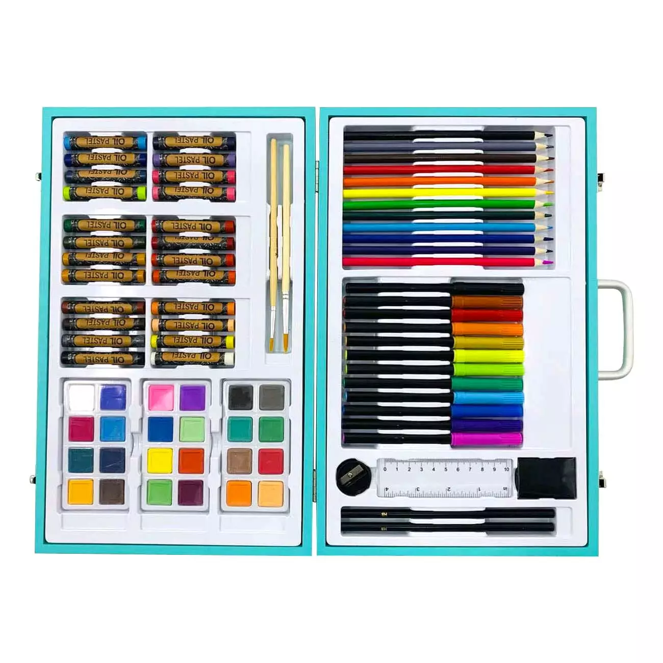 82-osainen taiteilijasalkku tarjoaa kattavan valikoiman välineitä piirtämiseen, värittämiseen ja maalaamiseen. Kompakti ja kestävä puinen salkku tekee tarvikkeiden säilytyksestä ja kuljettamisesta helppoa, joten koko setti kulkee vaivatta mukana harrastuksiin, kouluun tai kotiin. Käytännöllinen kokonaisuus sopii sekä lapsille, aloittelijoille että kokeneemmille taiteen harrastajille.