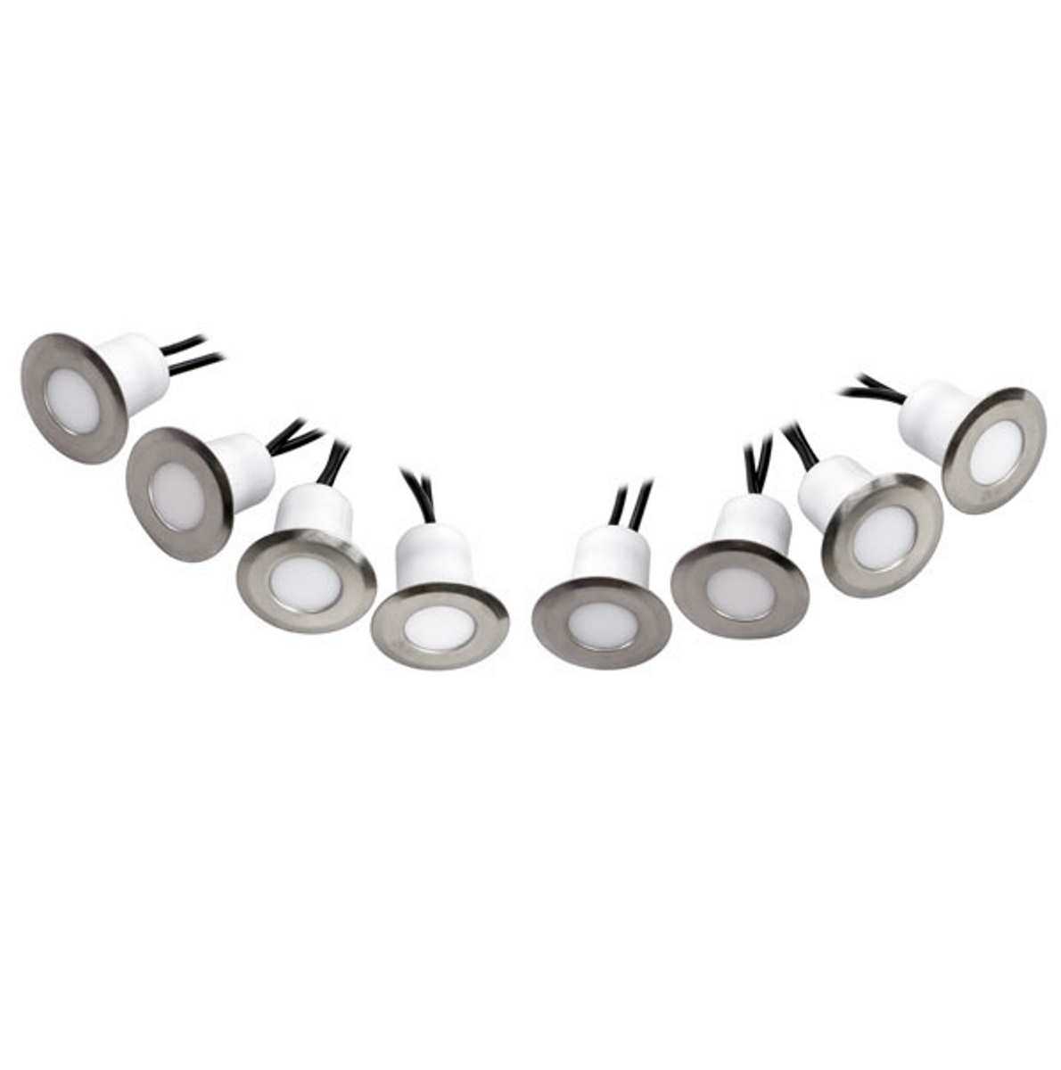 Valaisinsarjassa on 12 V pistotulppamuuntaja 6 m liitosjohdolla ja valaisimien välillä 0,8 m johdot.