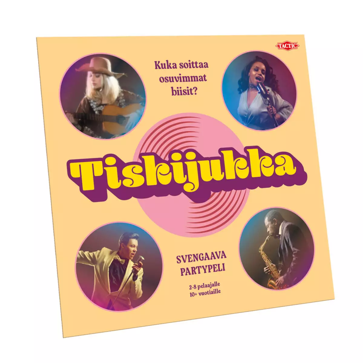 Bileet pystyyn! Tiskijukka on hauska ja sosiaalinen musiikkipeli. Keksi ikioma DJ-nimesi ja ota Tiskijukan rooli haltuun. Soita kappale levyn raidan antaman kuvauksen mukaan, ja muut pelaajat arvaavat, mikä levyn raidoista oikein on kyseessä. Tässä pelissä tärkeintä eivät ole pisteet, vaan hyvä meininki. Tiskijukka on peli, joka jytää ja svengaa! Peli on valmistettu Suomen Porissa, Tactic Gamesin omalla vastuullisella tehtaalla.