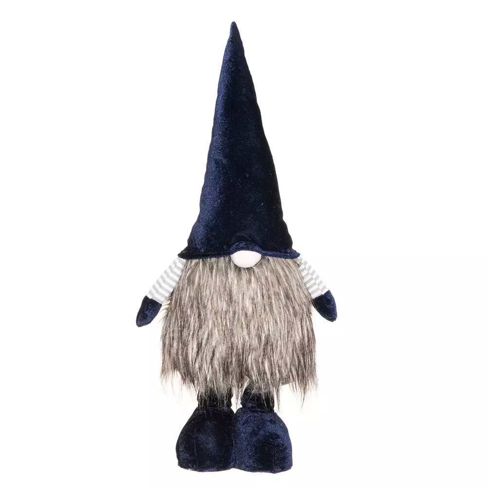 Seisova tonttu tuo mukavaa tunnelmaa joulukotiin. Tummansininen samettilakki ja tummanharmaa turkisvartalo antavat tontulle lämpimän ilmeen. Teleskooppijalkojen ansiosta tontun korkeuden voi säätää tilaan sopivaksi. Tonttu sopii hyvin lattialle, eteiseen tai kuusen viereen ja pysyy tukevasti pystyssä.