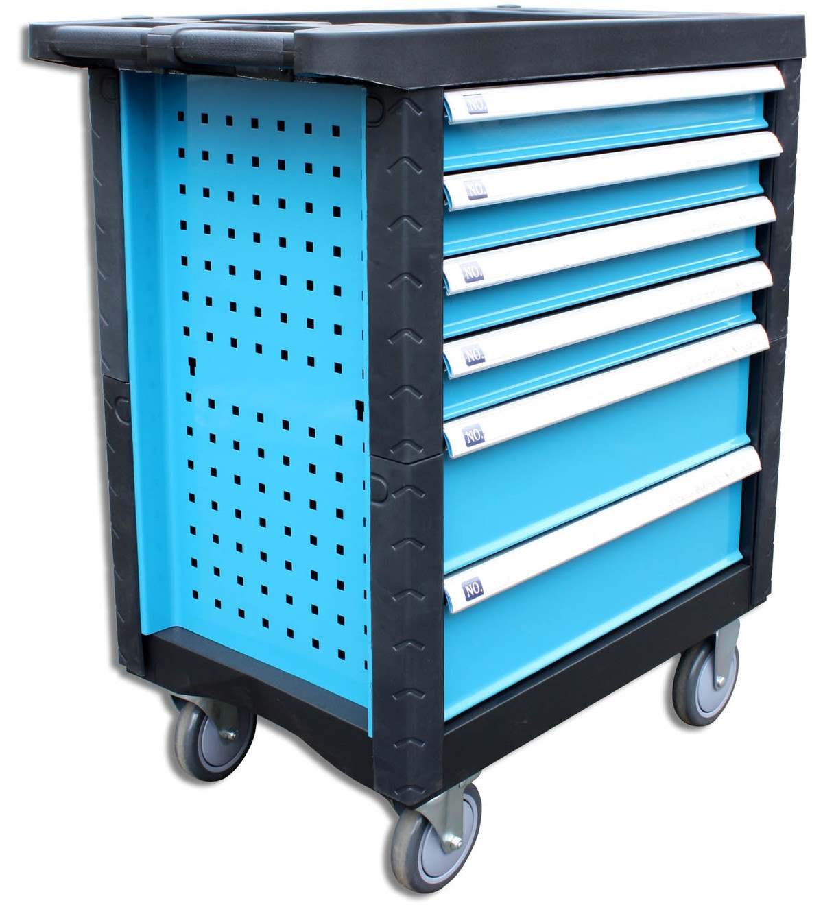 Työkaluvaunussa on kuusi helposti liukuvaa kuulalaakeroitua laatikkoa. Työkaluvaunun laatikot ovat lukittavat, joten saat kaiken niiden sisällön suojaan.