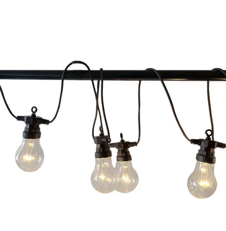 Puutarhavalot pimeneviin loppukesän iltoihin ja käytettäväksi puutarhassa, vaikka vuoden ympäri. Valosarjassa 10 lämpimän sävyistä LED-polttimoa 50cm välein. Valo-osuuden pituus 5 metriä. Valosarjassa koukut ripustamista varten.