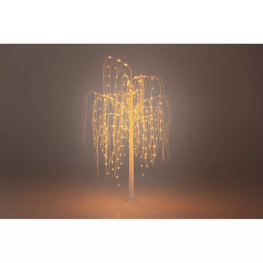 Valopuussa on kauniit rennosti alaspäin riippuvat oksat. Satumaista tunnelmaa talvipihaan. Valopuu on varustettu 256 kpl kauniilla meripihkanvärisellä micro-LEDillä. Valkoinen runko. Korkeus 160 cm. Liitäntäjohto 5 m. IP44. Ulkokäyttöön.