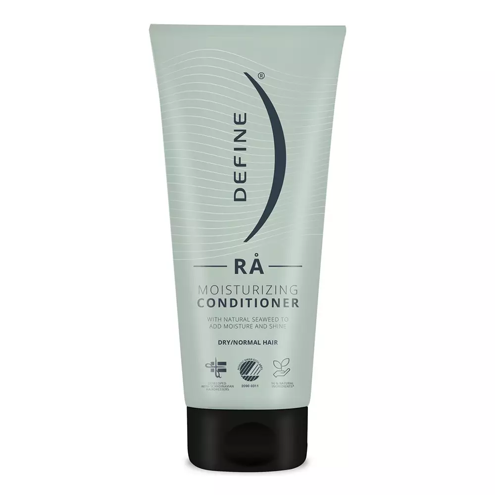 Define RÅ Moisturizing Conditioner on kosteuttava hoitoaine, joka on suunniteltu kuiville ja normaaleille hiuksille. Hoitoaine sisältää luonnollista merilevää, joka ravitsee ja antaa hiuksille elinvoimaa, pehmeyttä ja upeaa kiiltoa. Sen hellävarainen koostumus selvittää hiukset helposti ja jättää ne kevyiksi ja silkkisen sileiksi.