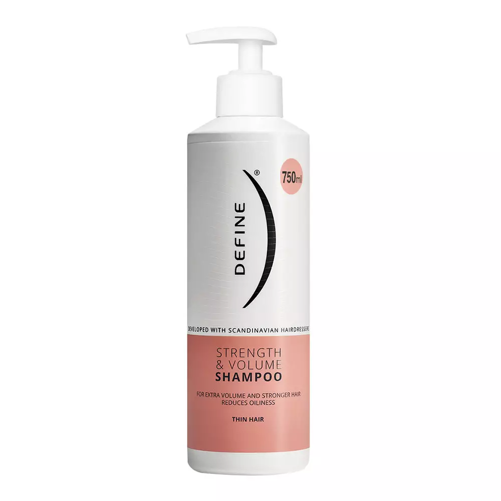 Define Strength & Volume Shampoo tuo hiuksiin tuuheutta samalla vahvistaen niitä. Se poistaa myös tehokkaasti rasvaisuutta ja muotoilutuotteiden jäämiä hiuksista ja hiuspohjasta. Define Strength & Volume Shampoo on vegaaninen, eikä se sisällä silikonia. Define-tuotesarja on kehitetty yhteistyössä skandinaavisten kampaajien kanssa. Pakkauskoko 750 ml.