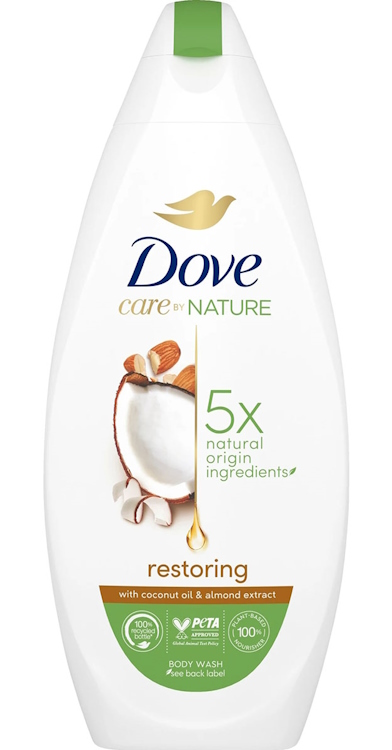 • Dove Care by Nature Restoring Ritual sisältää kookosöljyä ja manteliuutetta, joiden tiedetään puhdistavan ja hoitavan ihoa hellävaraisesti.