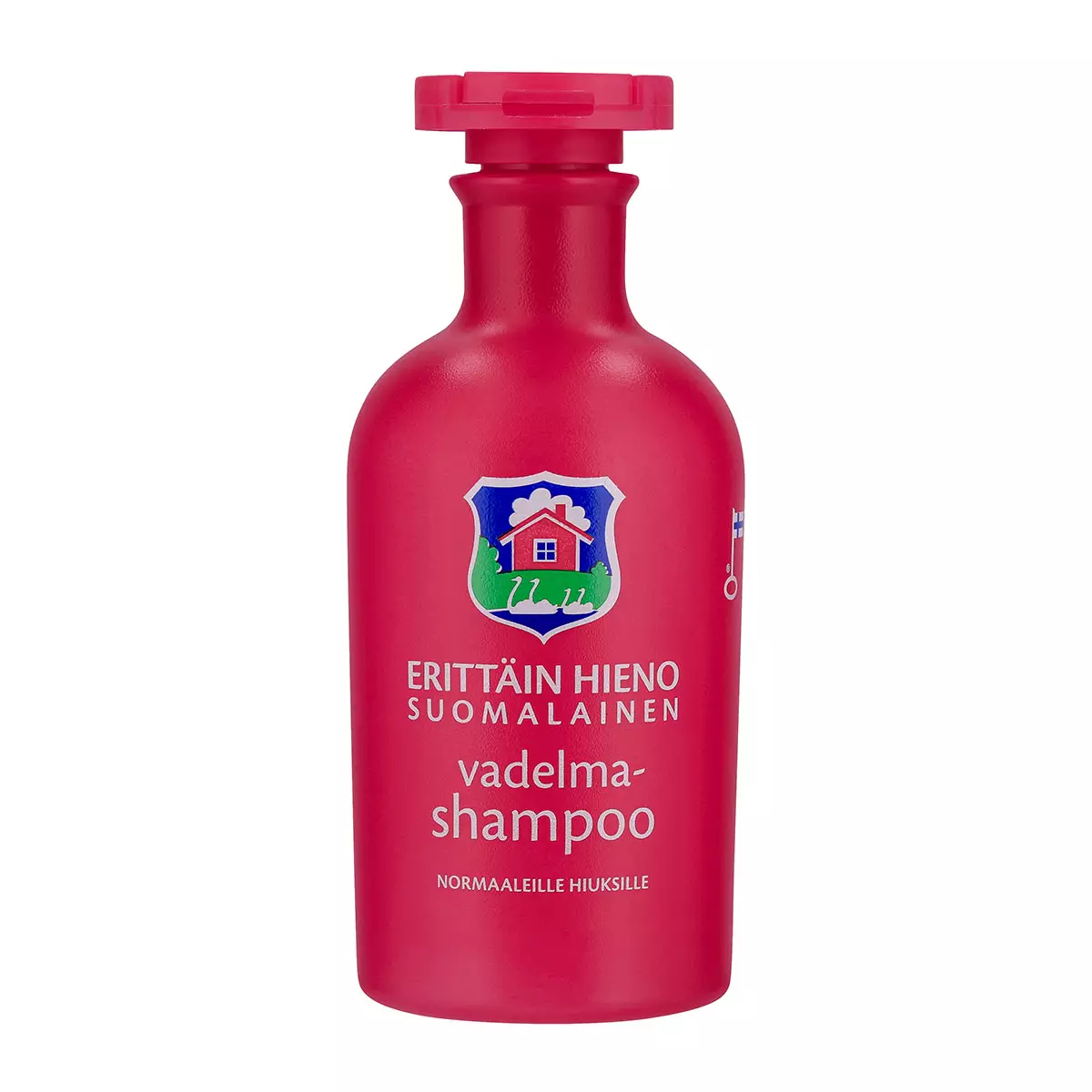 Erittäin Hieno Suomalainen Vadelmashampoo sisältää vadelmauutetta ja pesee hiukset puhtaiksi ja pehmeiksi. Hiukset ovat kuin sadevedellä pestyt. Tuote on valmistettu Suomessa ja sille on myönnetty Avainlippu -tunnus. Levitä kosteisiin hiuksiin, vaahdota ja huuhtele huolellisesti. Pakkauskoko 300 ml.