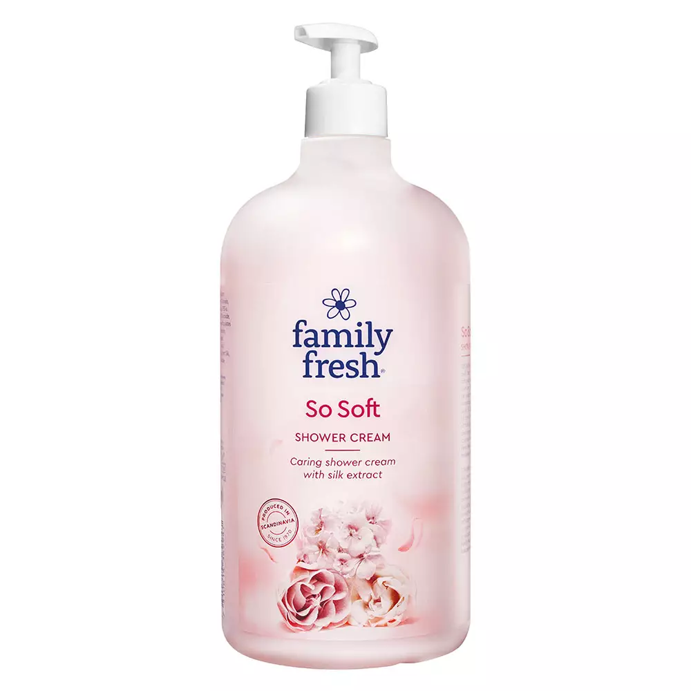 Family Fresh So Soft on silkinpehmeä, silkkiuutetta sisältävä suihkusaippua, jossa on kesäniityn kauneimpien kukkien hento tuoksu. Haemme inspiraatiota ainutlaatuisesta luonnosta; kauniisti kukkivista kedoista ja pohjattoman lumoavasta metsästä, auringon lämmittämistä hedelmistä ja raikkaista marjoista. Puhdasta iloa koko perheelle. Riittoisa pumppupakkaus. Pakkauskoko 1000 ml.