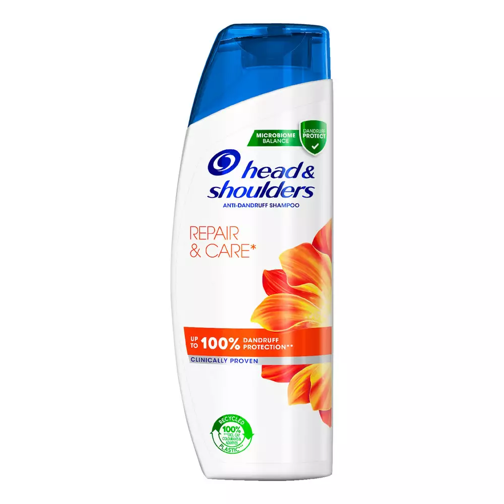Head & Shoulders Repair & Care shampoo auttaa torjumaan hilsettä ja hoitamaan hiuspohjaa päivittäisessä käytössä. Microbiome Balance -koostumus vaikuttaa hilseen taustalla oleviin syihin sekä auttaa vähentämään hilseilyä, kutinaa ja kuivuutta. Shampoo puhdistaa hiukset tehokkaasti ja jättää hiuspohjan raikkaan tuntuiseksi. pH-tasapainotettu koostumus sisältää vitamiineja ja antioksidantteja, jotka auttavat pitämään hiukset pehmeinä ja hyväkuntoisina. Dermatologisesti testattu shampoo sopii kaikille hiustyypeille.